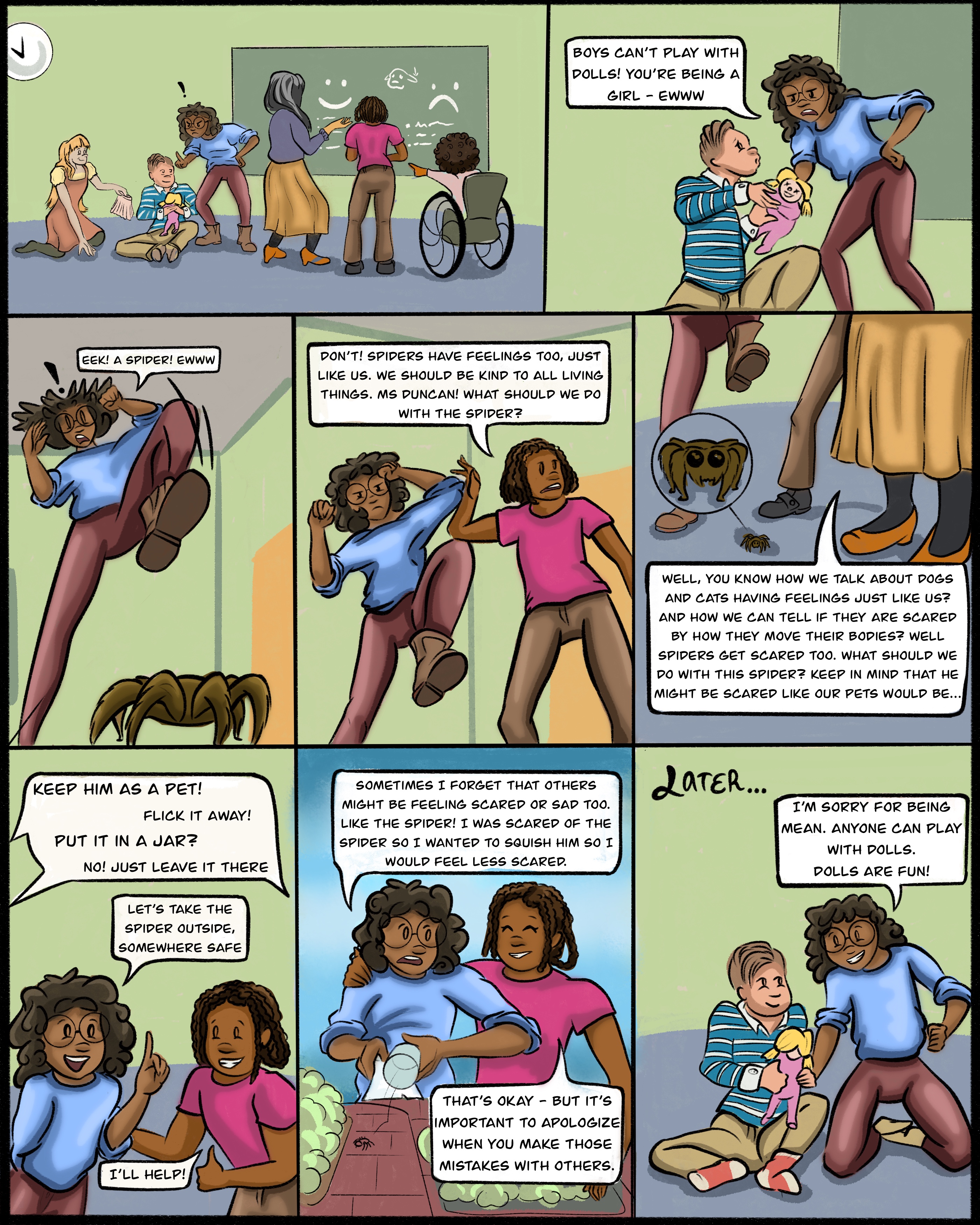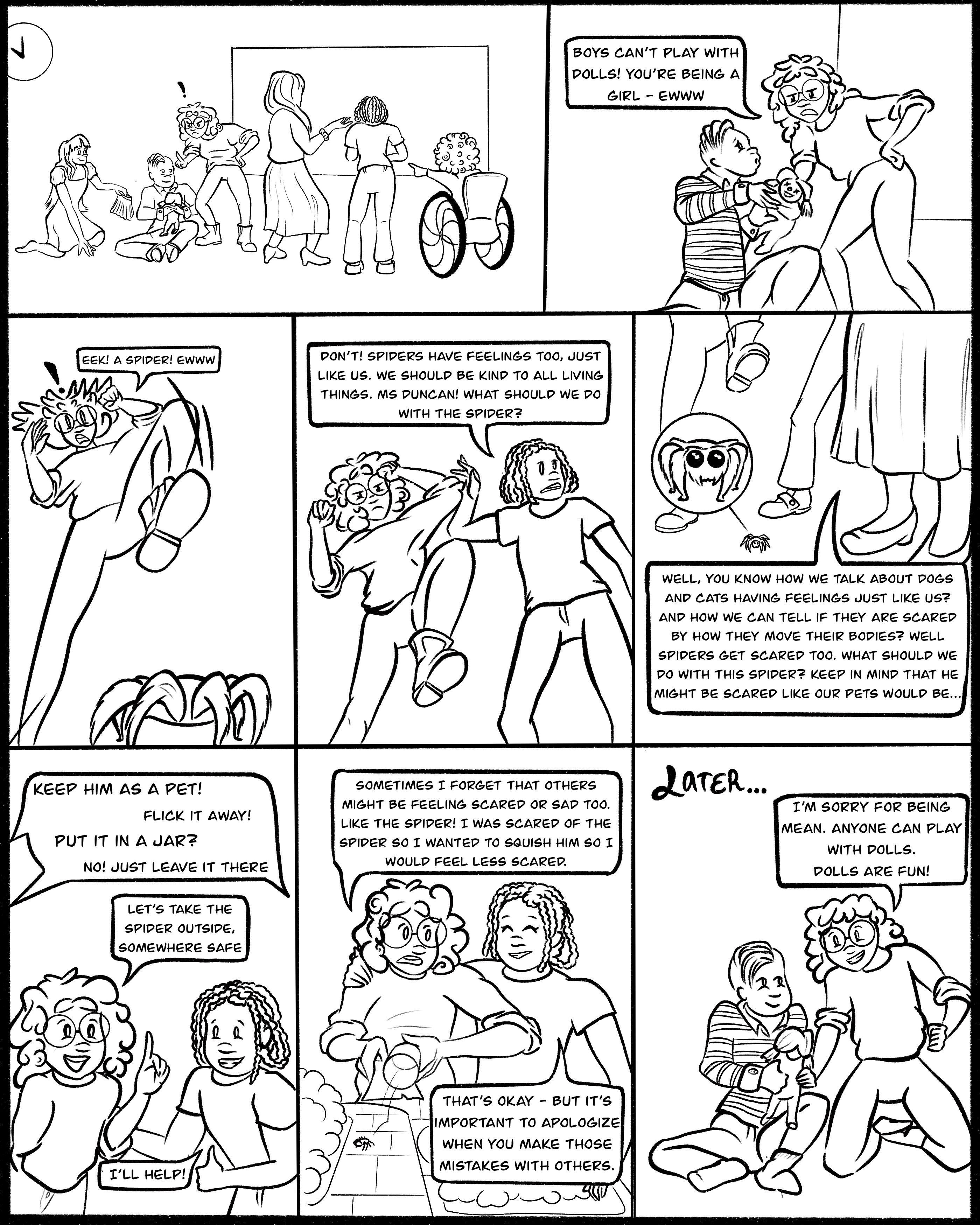 These comics offer short stories related to key themes of the Promising Practices Framework. The black & white versions can be used as colouring pages, as well! The stories were designed for two different age groups to align the content with the audience.